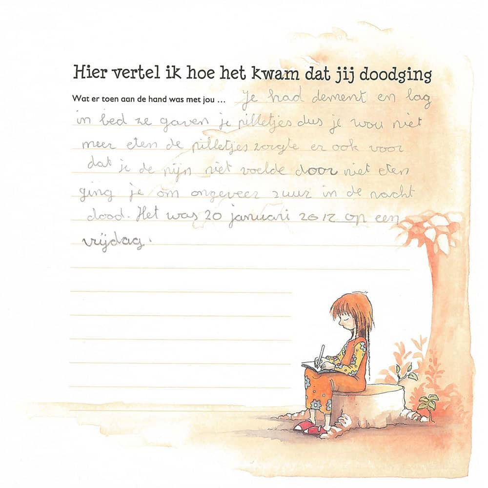 Bovenstaande fragmenten zijn afkomstig uit het herinneringsboek voor kinderen, Dag lieve …, een uitgave van Uitgeverij ZorgNa.