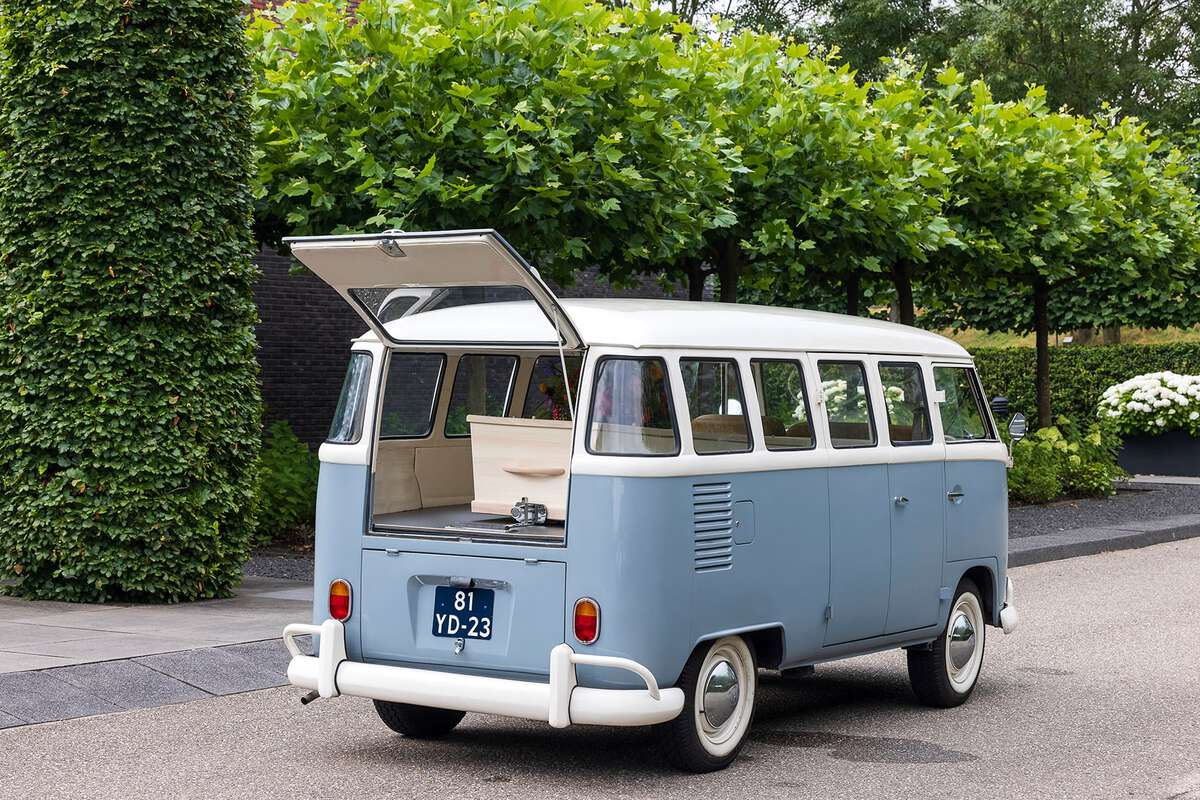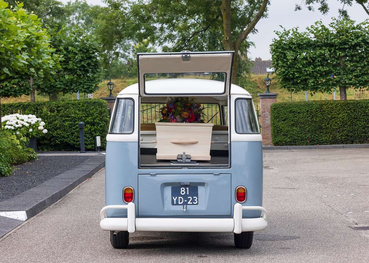 Legendarische Volkswagen bus als rouwauto